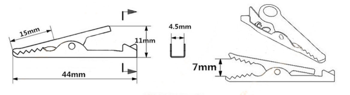 1、鱷魚夾最大能過多少電流? 鱷魚夾在電測量領(lǐng)域一般僅用來測量電壓,在測量要求不是太高的情況下,也可以臨時測量電流。當(dāng)用鱷魚夾測量電流時,要特別注意測量電流的大小,因?yàn)轺{魚夾鉗口呈鋸齒狀, 其夾持力與被測體材料性質(zhì),接觸面與被測體形狀的嚙合程度,都關(guān)系到鱷魚夾承載電流的能力。上述鱷魚夾對電流承載能力的標(biāo)稱,是在典型 情況下按最大電流的60%選取的數(shù)值:我們以10mm開口的鱷魚夾為例:夾在一根圓柱上(如螺桿)和夾在一叢測試線上其過電流能力差約3倍。 夾持在直徑4mm圓柱上可承載20A電流,夾持在8mm圓柱上約為10A,夾持在6平方毫米的一叢0.1絲徑的祼銅線上,承載能力可達(dá)40A,故 綜合考慮10mm開口鱷魚夾最常用的現(xiàn)場環(huán)境,標(biāo)定其承載能力為10A。所以用戶可以按照自已的使用環(huán)境,優(yōu)先不同開口尺寸的鱷魚夾。 說明:測試夾承載電流的能力與被夾物之間嚙合狀況有很大關(guān)系,*為理想狀態(tài)數(shù)據(jù)。 2、好夾子和爛夾子的區(qū)別: